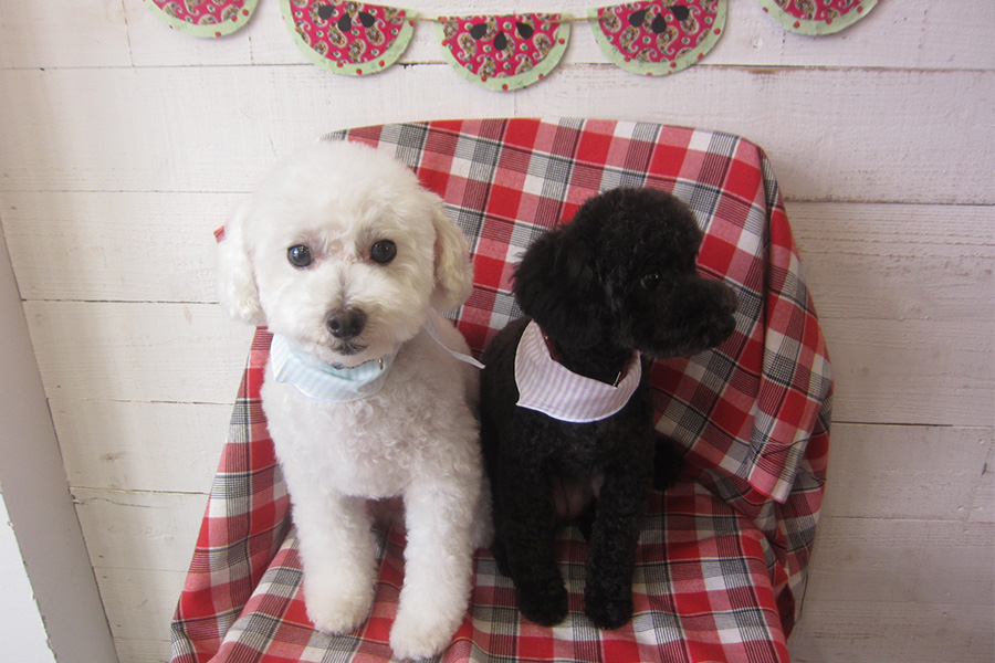 本日のお客様は トイプードルの ゆずちゃんともんちゃんです。 カットコースをご利用頂きました。 トイプードルのゆずちゃんともんちゃんが、 カットコースでご来店くださいました。 ゆずちゃんは混合ワクチンDMの特典として 炭…