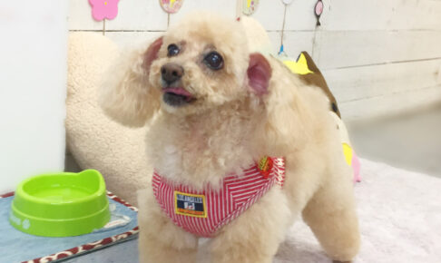 本日のお客様は トイプードルのボギーちゃんです。 カットコースをご利用頂きました。 トイプードルのボギーちゃんが、 カットコースでご来店くださいました。 全身を少し短く整えて、 顔は小さめのベア風に整えました。 ボギーち…