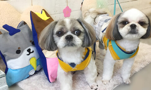 本日のお客様は シーズーの 小太郎ちゃんと茶々丸ちゃんです。 カットコースをご利用頂きました。 シーズーの小太郎ちゃんと茶々丸ちゃんが カットコースでご来店くださいました。 いつものように全身をカットして、 耳やしっぽの…