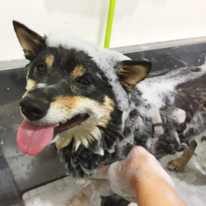 柴犬のレンちゃんがシャンプーコースと