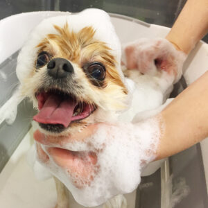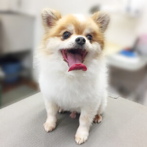 お尻や前肢はすっきりカットしました。