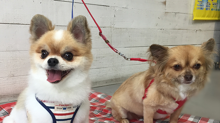 ミックスのブルちゃんとチワワのココちゃんが、