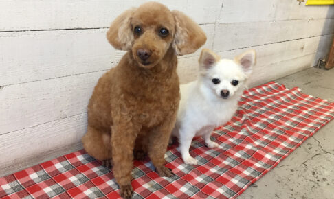 本日のお客様は トイプードルのまおちゃんと チワワのまこちゃんです。 2頭ともシャンプーコースと送迎サービス、 まおちゃんは顔カットと足回りカットと足先クリップ、 まこちゃんは部分カットを ご利用いただきました。 2頭と…