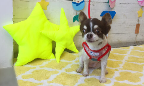 本日のお客様は チワワのるにちゃんです。 カットコースをご利用頂きました。 チワワのるにちゃんが、 カットコースでご来店くださいました。 全身を軽くカットして、顔は丸く整えました。 しっぽは柴犬風に丸く整えました。 るに…