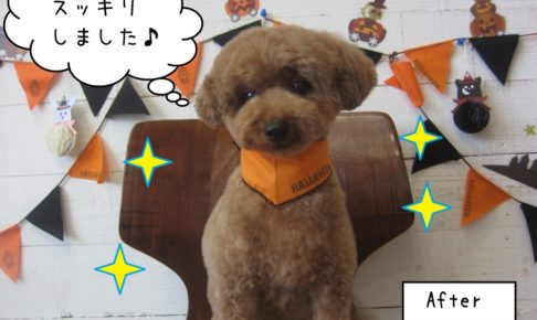 ハロウィンまであと少しです。 この週末は ハロウィンのイベントをするお店が いっぱいありそうですね。 さて、本日のお客様は トイプードルのレオンちゃんです。 カットコースをご利用頂きました。 飼い主様、レオンちゃん また…