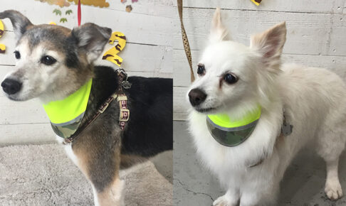 本日のお客様は ミックスのこむぎちゃんとあずきちゃんです。 カットコースをご利用頂きました。 こちらは、2頭共カットコースで、 顔丸く仕上げたミックス犬のあずきちゃん(小柄な方)と +薬用浴でポカポカ温浴したこむぎちゃん…