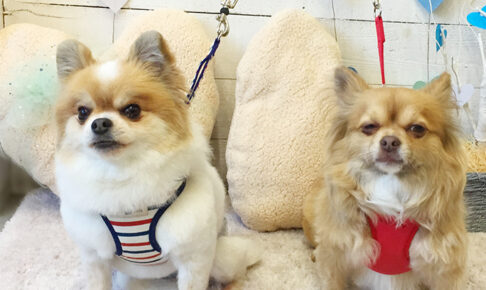 本日のお客様は ミックスのブルちゃんと チワワのココちゃんです。 カットコースをご利用頂きました。 ミックスのブルちゃんとチワワのココちゃんが 仲良くご来店くださいました。 ブルちゃんはカットコース、 ココちゃんはシャン…