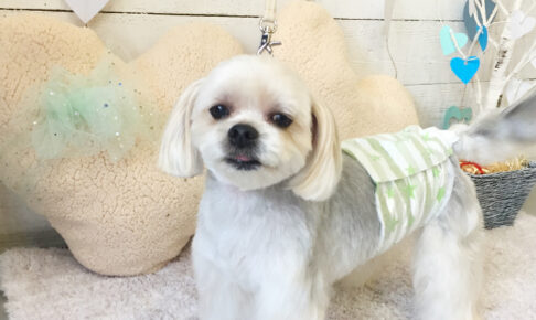 本日のお客様は ミックスの陽ちゃんです。 カットコースをご利用頂きました。 ミックスの陽ちゃんがカットコースで ご来店くださいました。 今回、誕生日DMの特典をご利用されました。 全身と手足をカットして、 顔をマルチーズ…