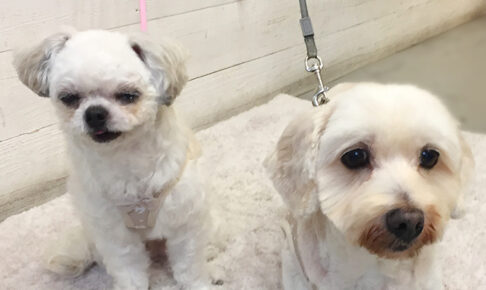 本日のお客様は ミックスのこむぎちゃんとあずきちゃんです。 こむぎちゃんはカットコース、 あずきちゃんはシャンプーコースと 顔カットをご利用頂きました。 ミックスのこむぎちゃんとあずきちゃんが、 仲良くご来店くださいまし…