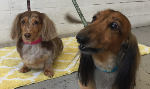 本日のお客様は ミニチュアダックスの れおんちゃんところんちゃんです。 れおんちゃんは シャンプーコースと部分カット、 ころんちゃんは シャンプーコースと部分カットと薬用浴を ご利用頂きました。 ミニチュアダックスのれお…