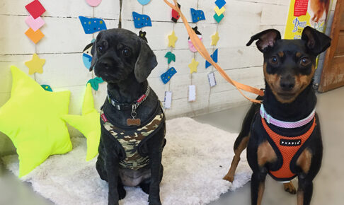 ミックスのナッシュちゃんとミニチュアピンシャーのロビーちゃんご来店♪