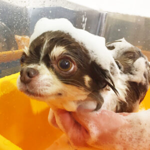 チワワのチョコちゃんが、シャンプーコースと