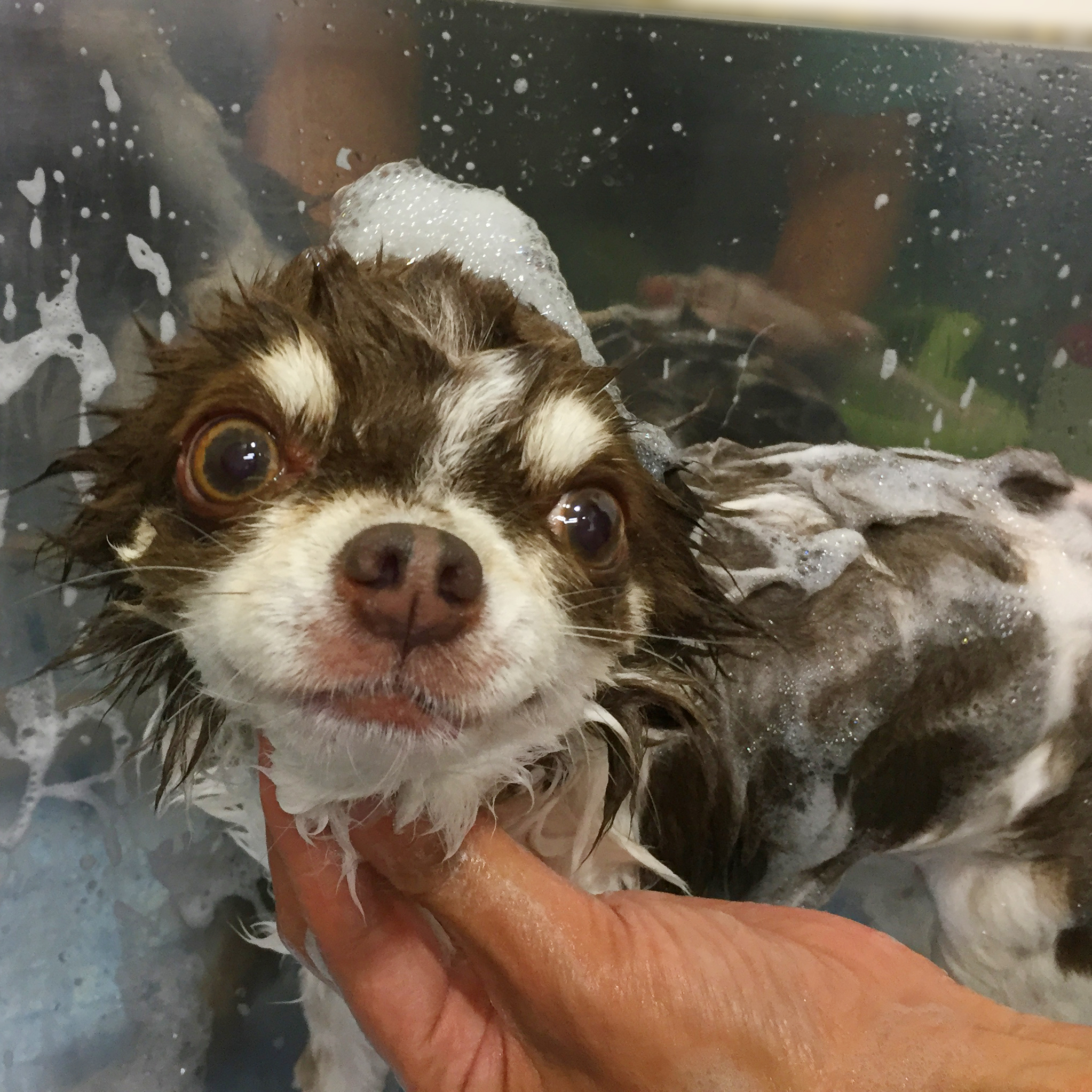 チワワのチョコちゃんとりんちゃん、シャンプーコースと部分カットでご来店♪