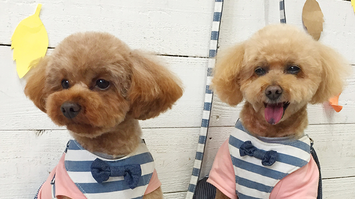 トイプードルのココアちゃんとむぎちゃんが、