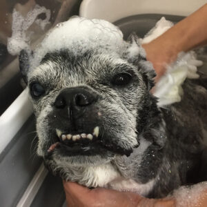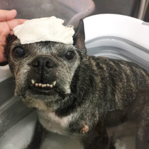 フレンチブルドッグのてんちゃんシャンプーコースと炭酸泉スパでご来店♪