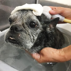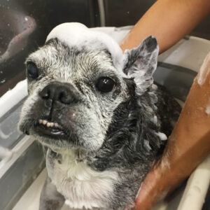 フレンチブルドッグのてんちゃんシャンプーコースと炭酸泉スパでご来店♪