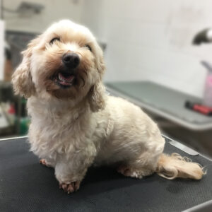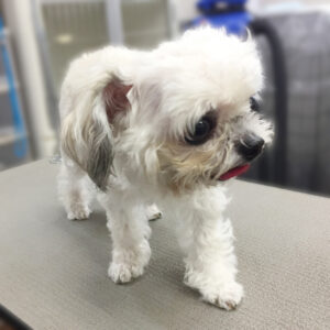 顔はマルチーズ風に丸くカットしました。