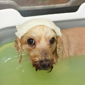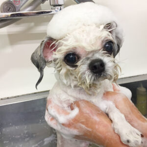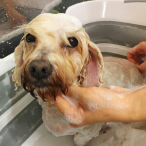 こむぎちゃんは薬用シャンプーで洗って、