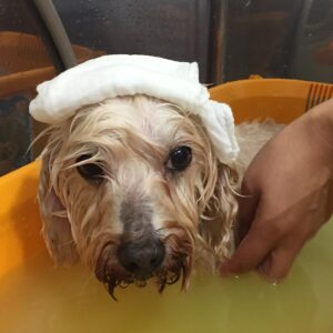 お揃いのカットで薬用浴もしてさっぱりしました。