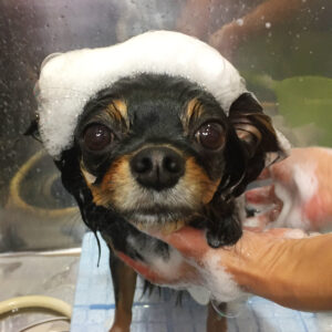 チワワのラッキーちゃんとまろちゃん、シャンプーコースと部分カットでご来店♪