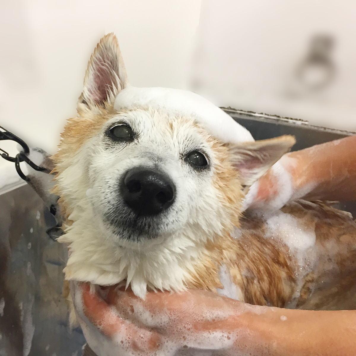 豆柴の花ちゃんがシャンプーコースと