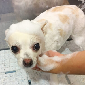 顔をピーナッツ風に小さめにカットしました。