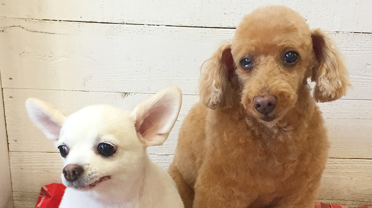 トイプードルのまおちゃんとチワワのまこちゃんが、