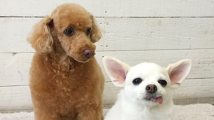 トイプードルのまおちゃんとチワワのまこちゃんが、