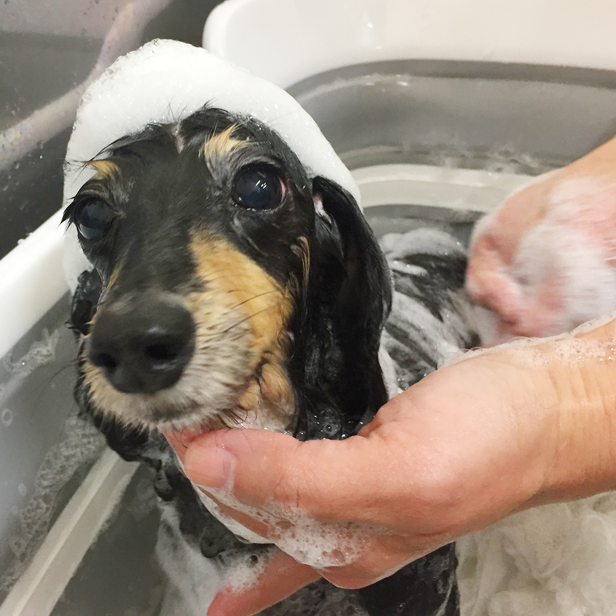 シャンプーで洗って、