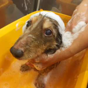 ミニチュアダックスのココちゃんシャンプーコースでご来店♪