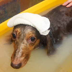 薬用浴にも浸かった後は、全身を軽くカットして、