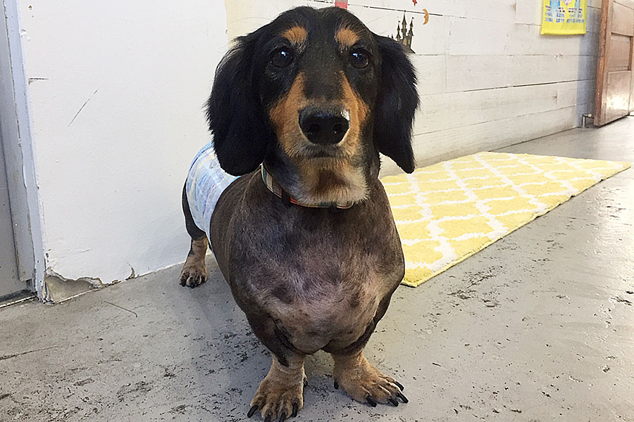 ミニチュアダックスのまるちゃんがカットコース、