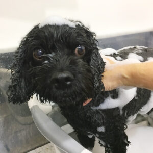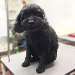 全身をカットして、耳をコッカー風に整えました。