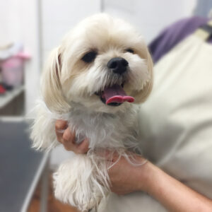 顔をマルチーズ風に整えました。