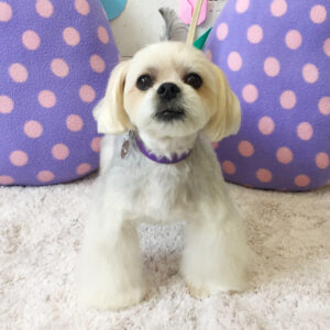 顔もマルチーズ風に丸く整えました。