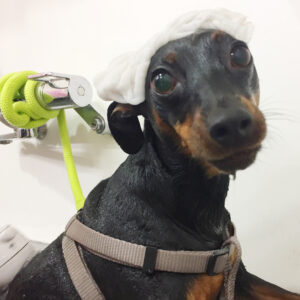 ミニチュアピンシャーのロビーちゃんシャンプーコースと炭酸泉スパでご来店♪