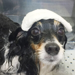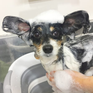 パピヨンのルビーちゃんがシャンプーコースと