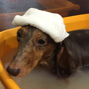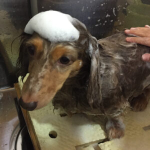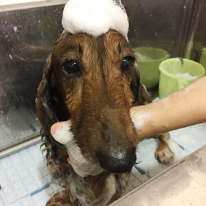 ころんちゃんはカットコースに薬用浴でのご来店です。