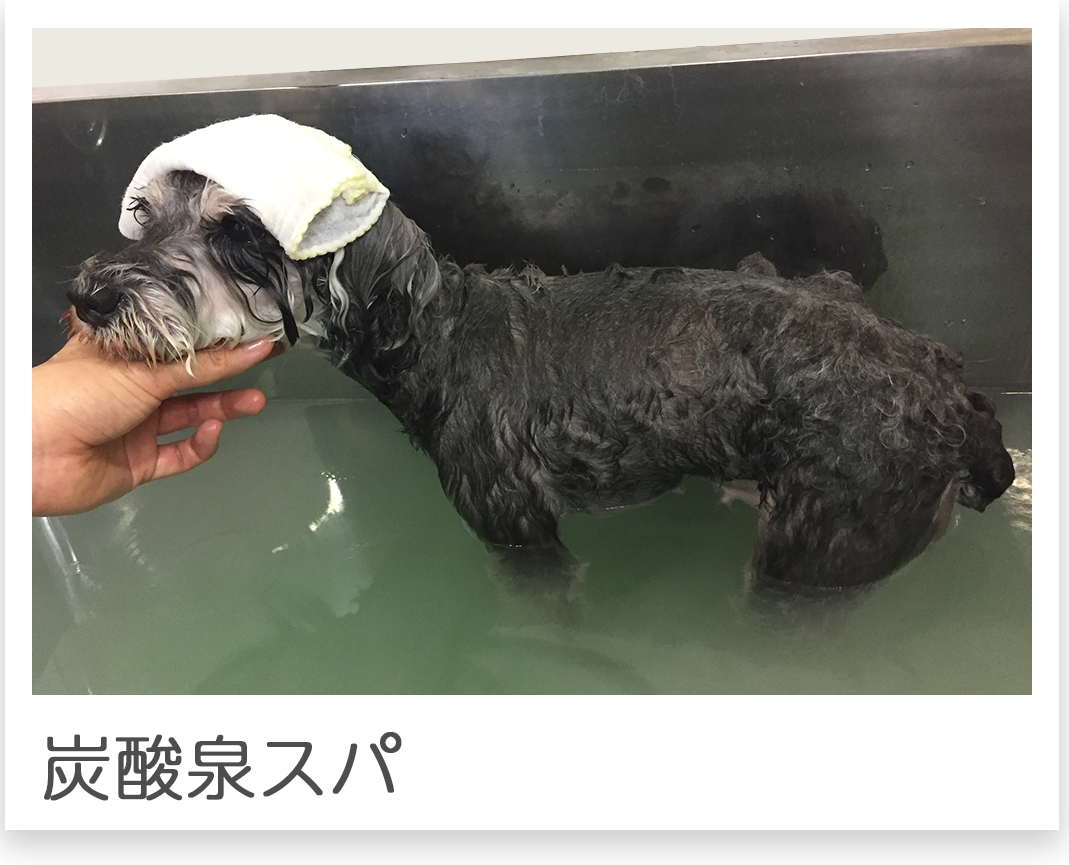 炭酸泉スパは、お肌に優しい弱酸性で、わんちゃんのニオイや毛並みもよくなり、フケ・かゆみ・脂症・乾燥肌を解消し、ヘルニア・関節痛の緩和にも♪