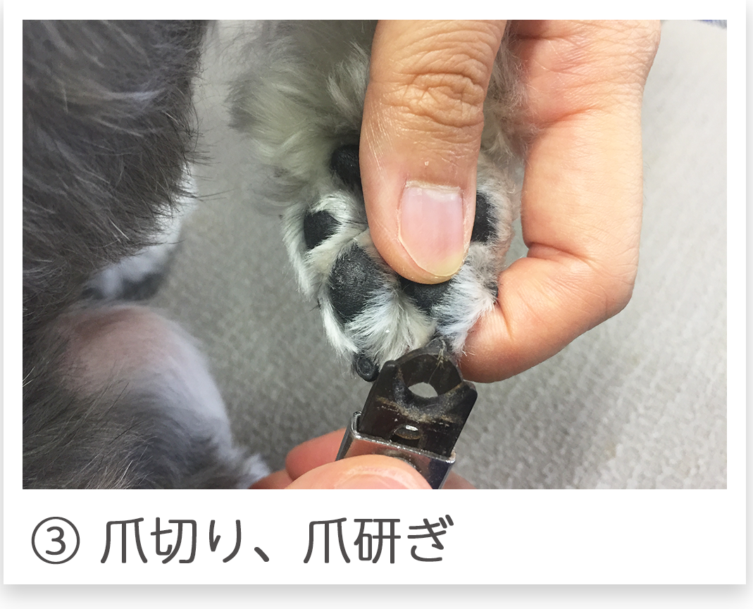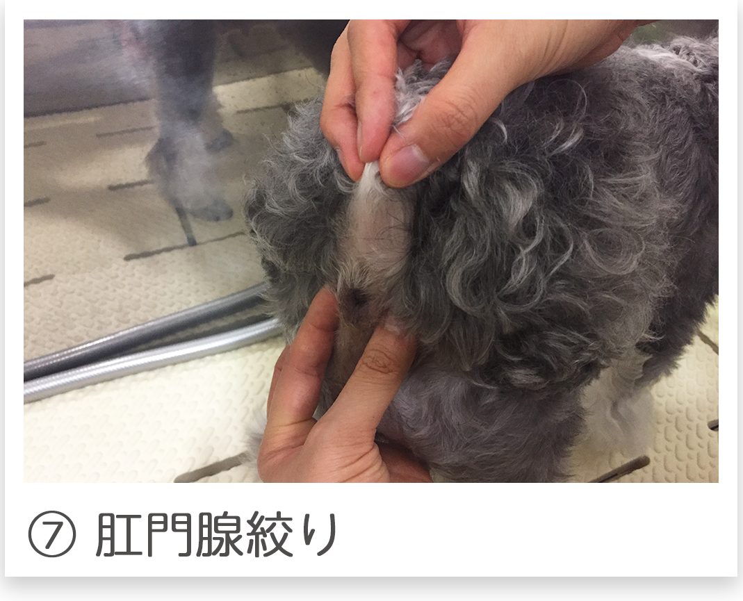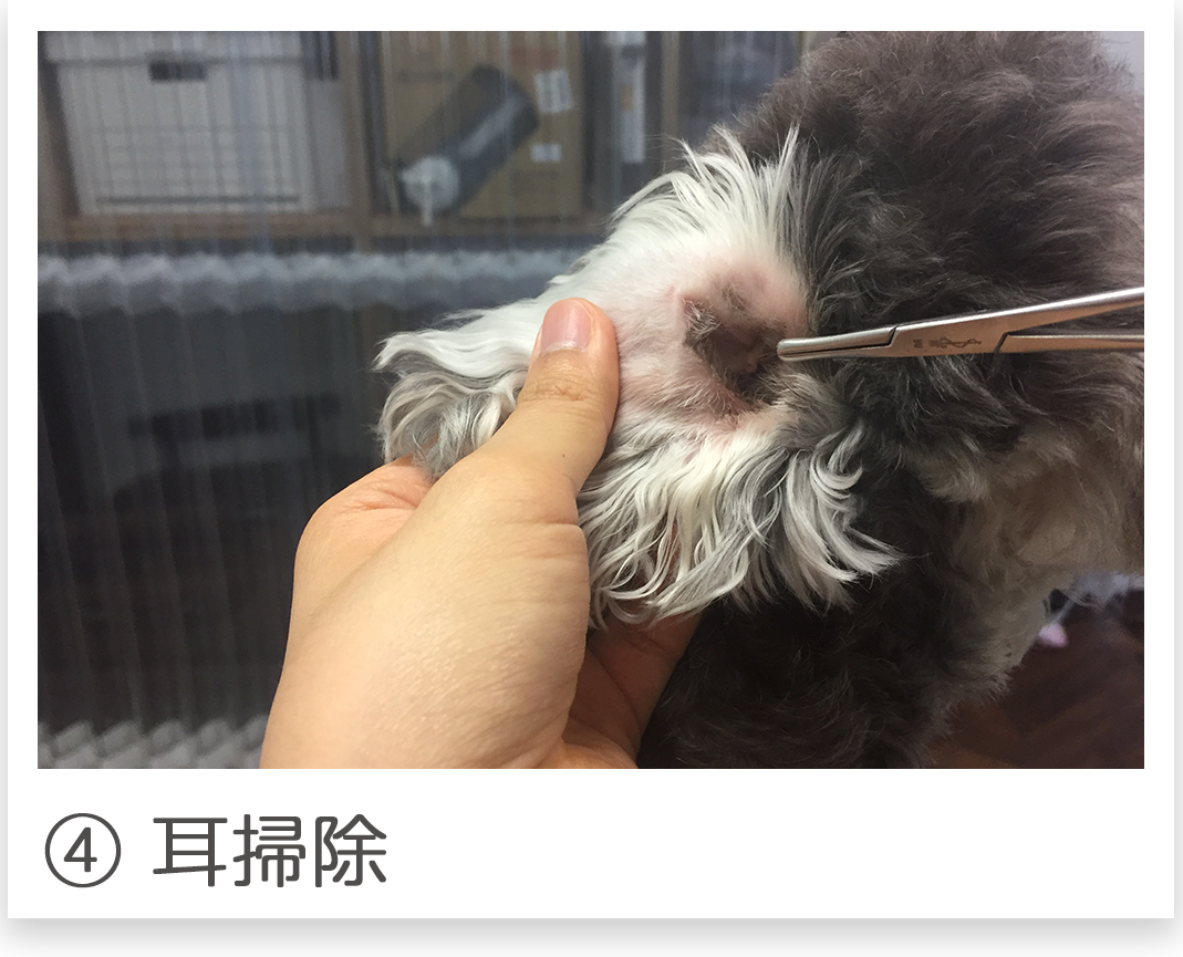 爪切り、耳掃除、足裏バリカン、足回りカット、肛門周りバリカン、肛門腺しぼり、シャンプー   ブロー、リボン、香水