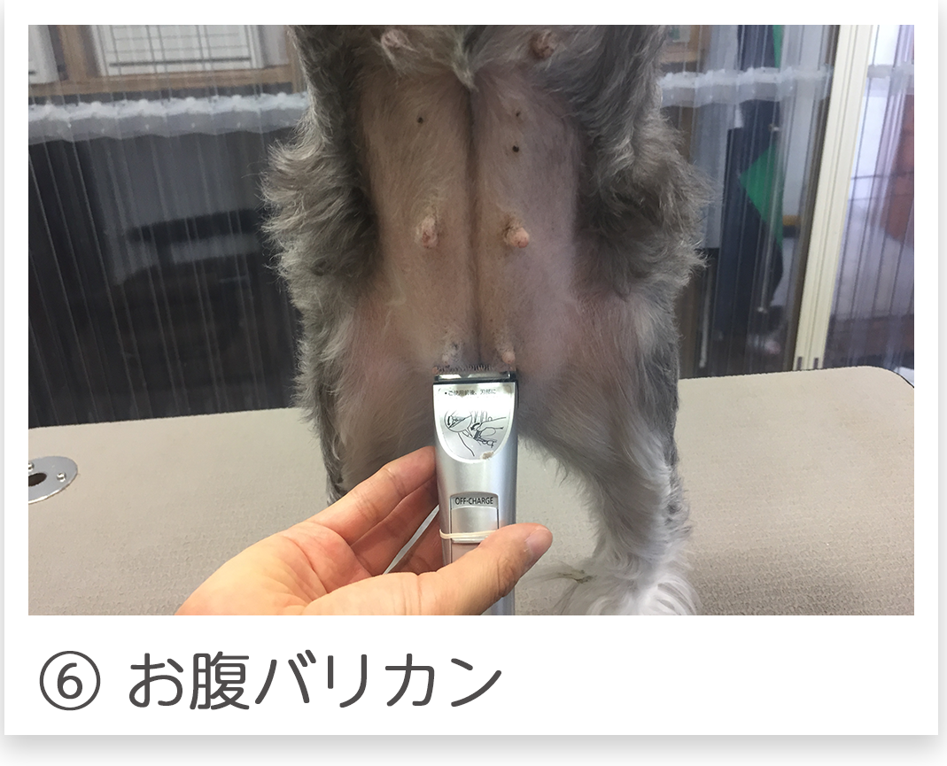 (ヒゲカット、お腹バリカンをご希望のお客様はお申し付けください)