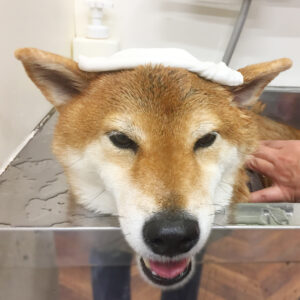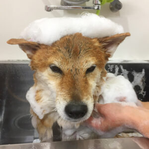 柴犬のりくちゃんがシャンプーセットと炭酸泉スパ、