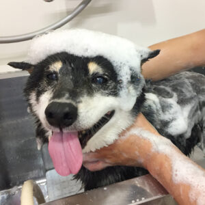柴犬のカールちゃんがシャンプーコースと