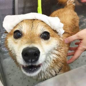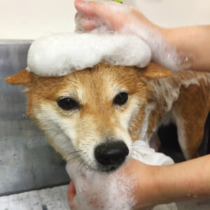 柴犬のマルちゃんがシャンプーコースと