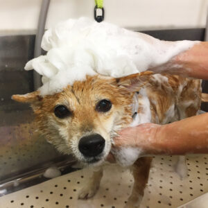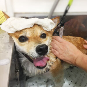 柴犬のマルちゃんが、シャンプーコースと