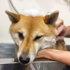 柴犬のモモちゃんが、シャンプーコースで