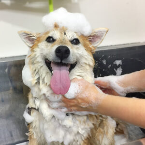 柴犬のモモカちゃんがシャンプーコースで