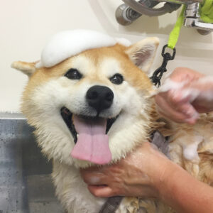 柴犬のモモカちゃんがシャンプーコースと