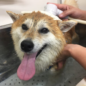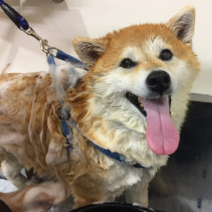 柴犬のモモカちゃんがシャンプーコースと