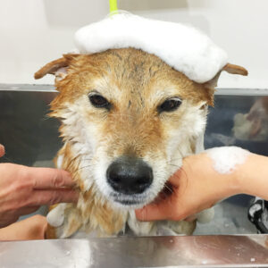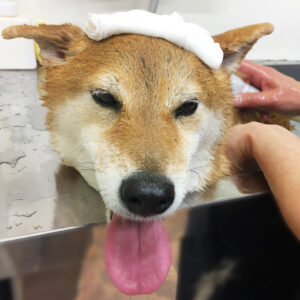 柴犬のりくちゃんが、シャンプーコースと